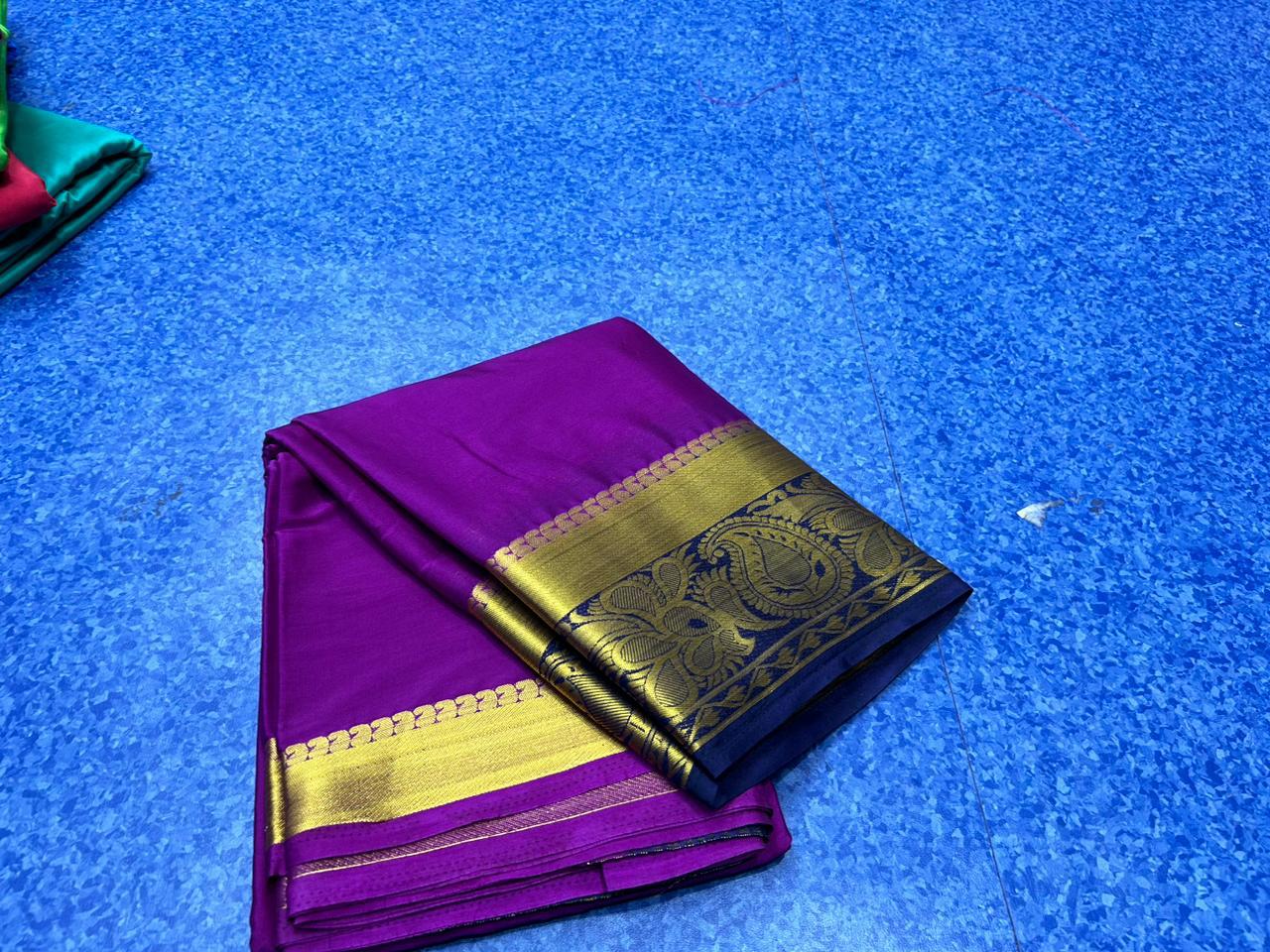 Whether worn for a special occasion, cultural event, or simply to elevate your everyday ensemble, the Elegant Mysore Crepe Silk in Purple & Navy Blue is a versatile and statement-making piece that effortlessly captures attention and admiration.