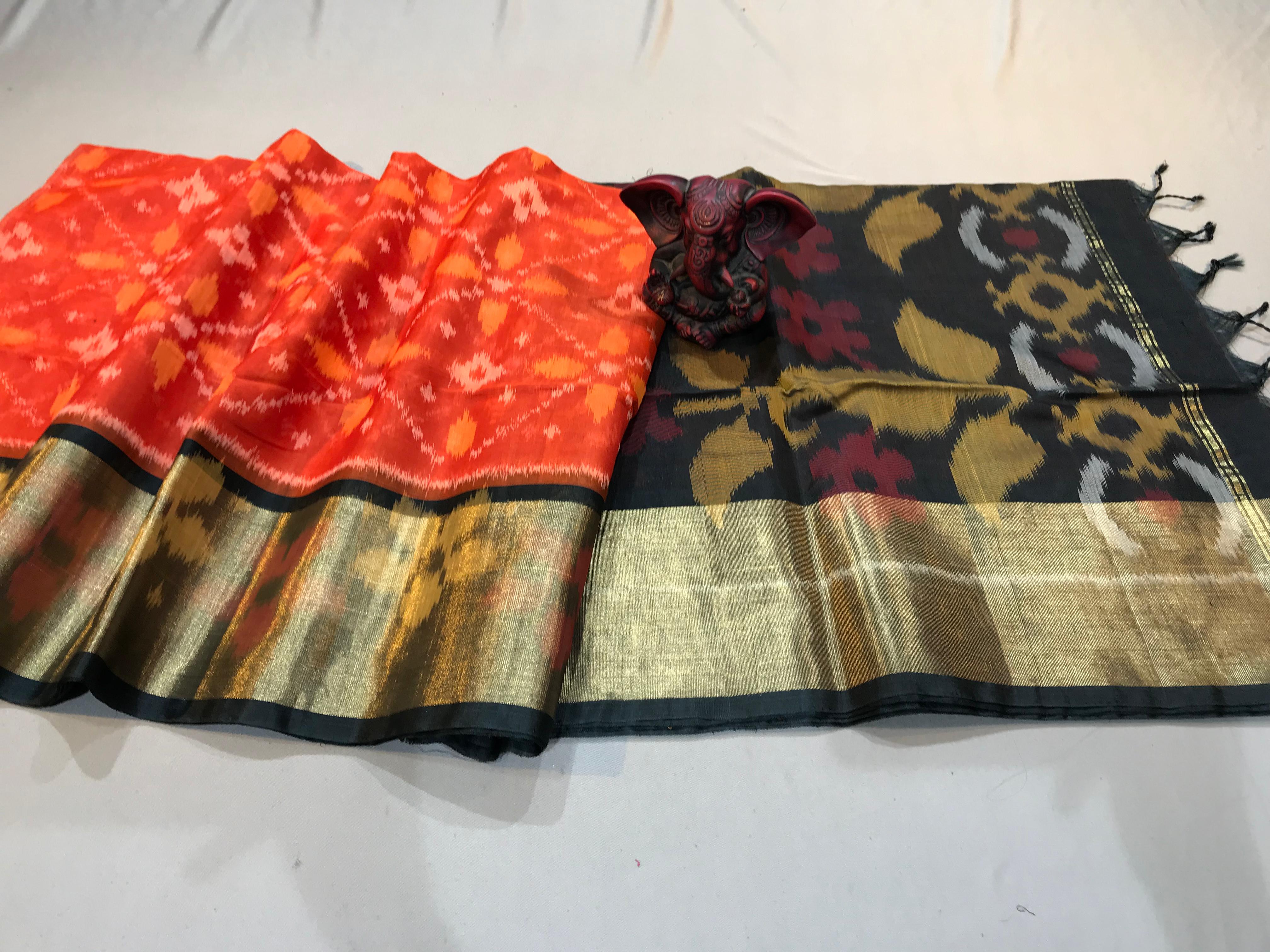 Imported from a unique seller in India, this saree is a rare find in Australia, making it a coveted addition to any fashion enthusiast’s closet. Don’t miss the chance to own this stunning Traditional Pochampalli Ikat Sico Saree in Fiery Orange and Black, and experience the beauty of Indian craftsmanship firsthand.